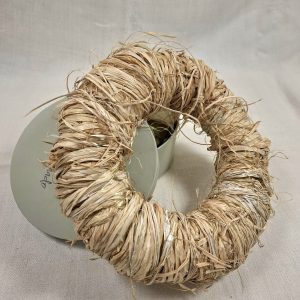 De papel reciclado recubierta de rafia, arraigada a la tradición gallega muy propia de este mes pero dándole otra utilidad.