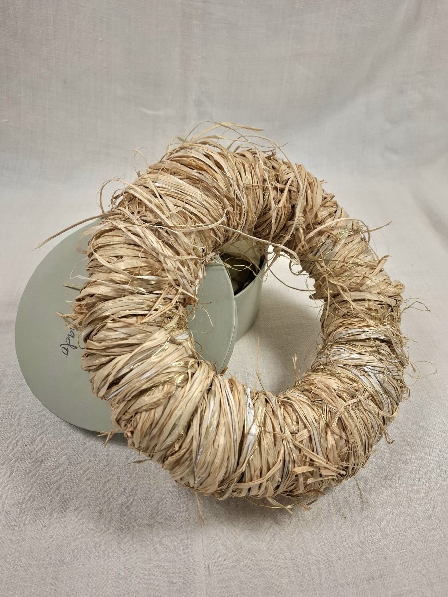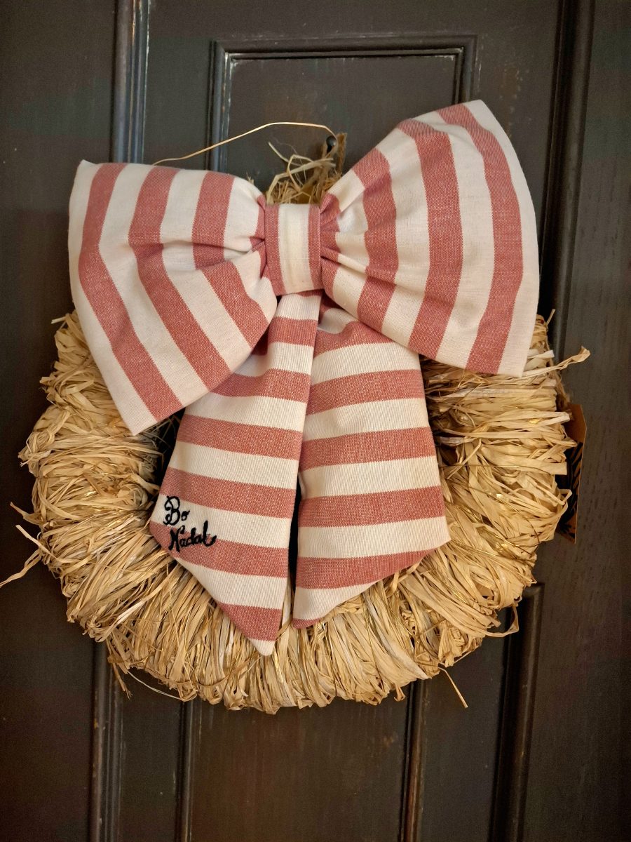 Enxebre y original corona de Navidad decorada con un lazo ligeramente acolchado sobre 35cm de diámetro