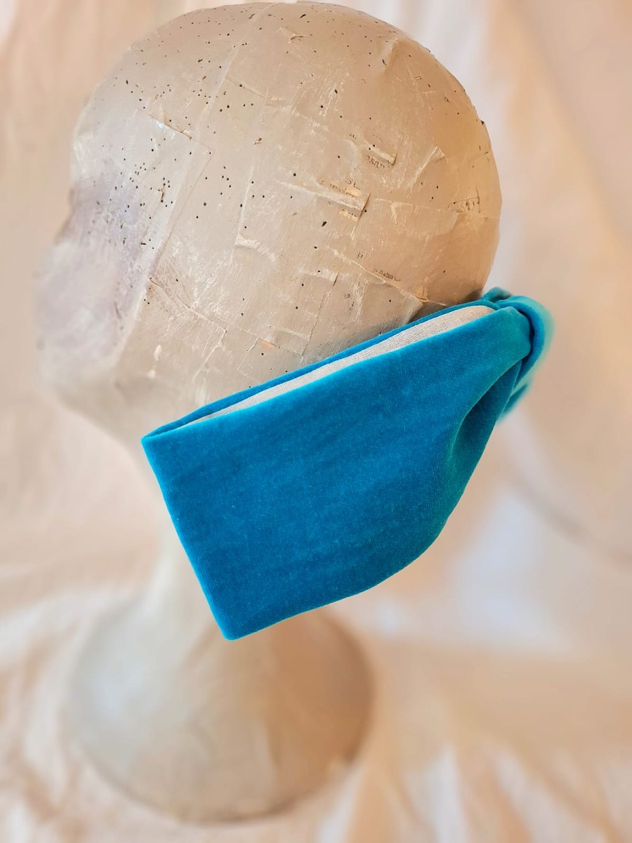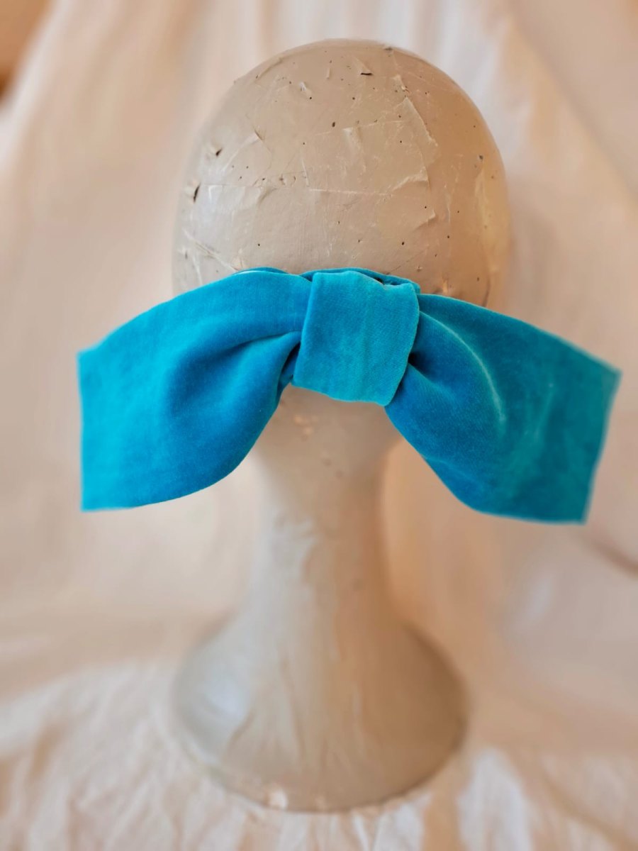 Lazo en terciopelo azul turquesa años 70, doble con organza interior en azul cielo.